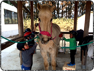 馬装・馬の世話・乗馬などを通して馬と仲良く過ごします。