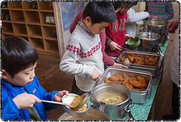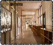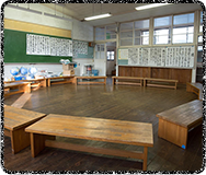 小学校の廃校を改築した木造平屋ひの木の床をもつ学校です。